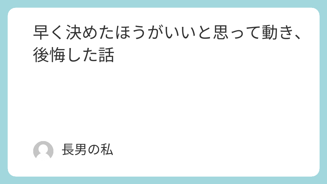この記事では、早く決めたことで生まれた後悔と、